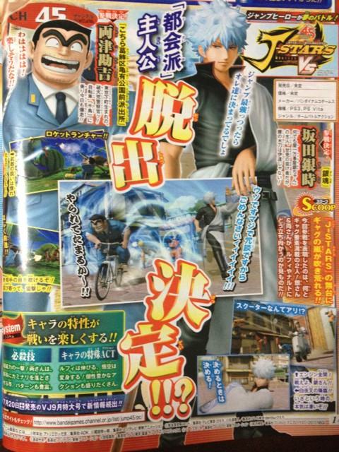 العدد الجديد من مجلة Jump اليابانية كشف لنا عن إضافة شخصيتين جديدتين في لعبة القتال J-Stars Victory VS، و هما كما كنتم تتمنون Sakata Gintoki من الأنمي و المانجا المحبوبة Gintama، و شخصية Kankichi Ryostu من مانجا العريقة في المجلة Kochikame.