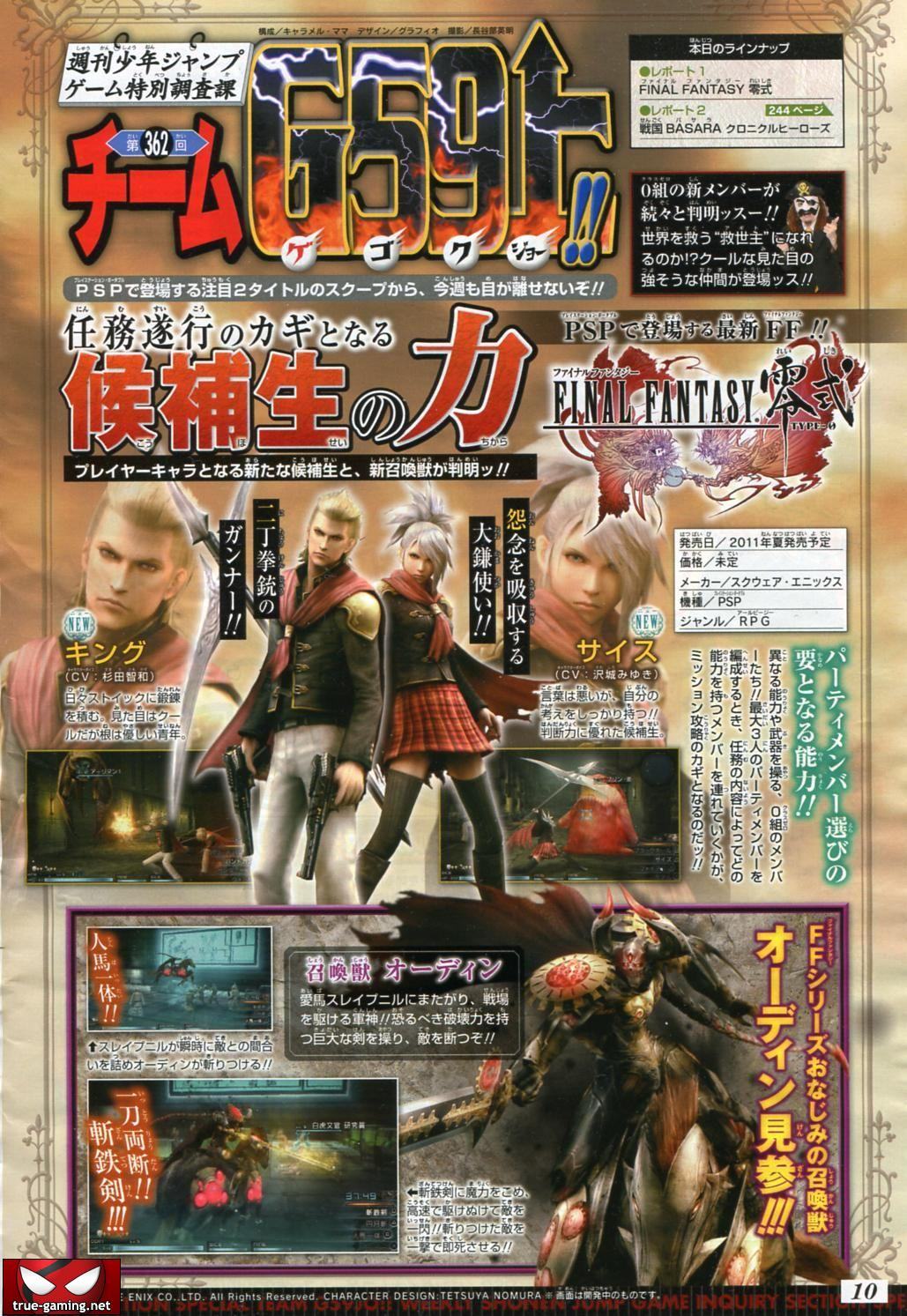 مجلة المانقا اليابانية الشهيرة إستعرضت بعدد هذا الاسبوع الجزء القادم من سلسلة فاينل فانتسي للـPSP مع الكشف عن شخصيات جديدة باللعبة, Final Fantasy Type-0 تصدر بصيف هذا العام كواحدة من أضخم إصدارات جهاز سوني المحمول.
