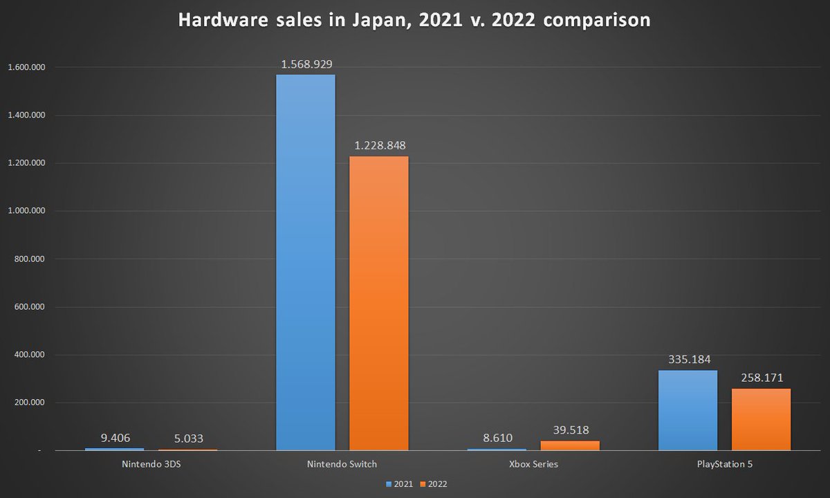مع نهاية الربع الأول من العام كانت أجهزة الاكس بوكس سيريس هي الوحيدة التي شهدت ارتفاعا بالمبيعات مقارنة بالربع الأول من العام الماضي وبنسبة وصلت إلى 359%، للمقارنة فجهاز الننتندو سويتش شهد تراجعا بالمبيعات بنسبة -22% و جهاز البلايستيشن5 شهد تراجعا بالمبيعات بنسبة -23% مقارنة بالربع الأول من العام الماضي: