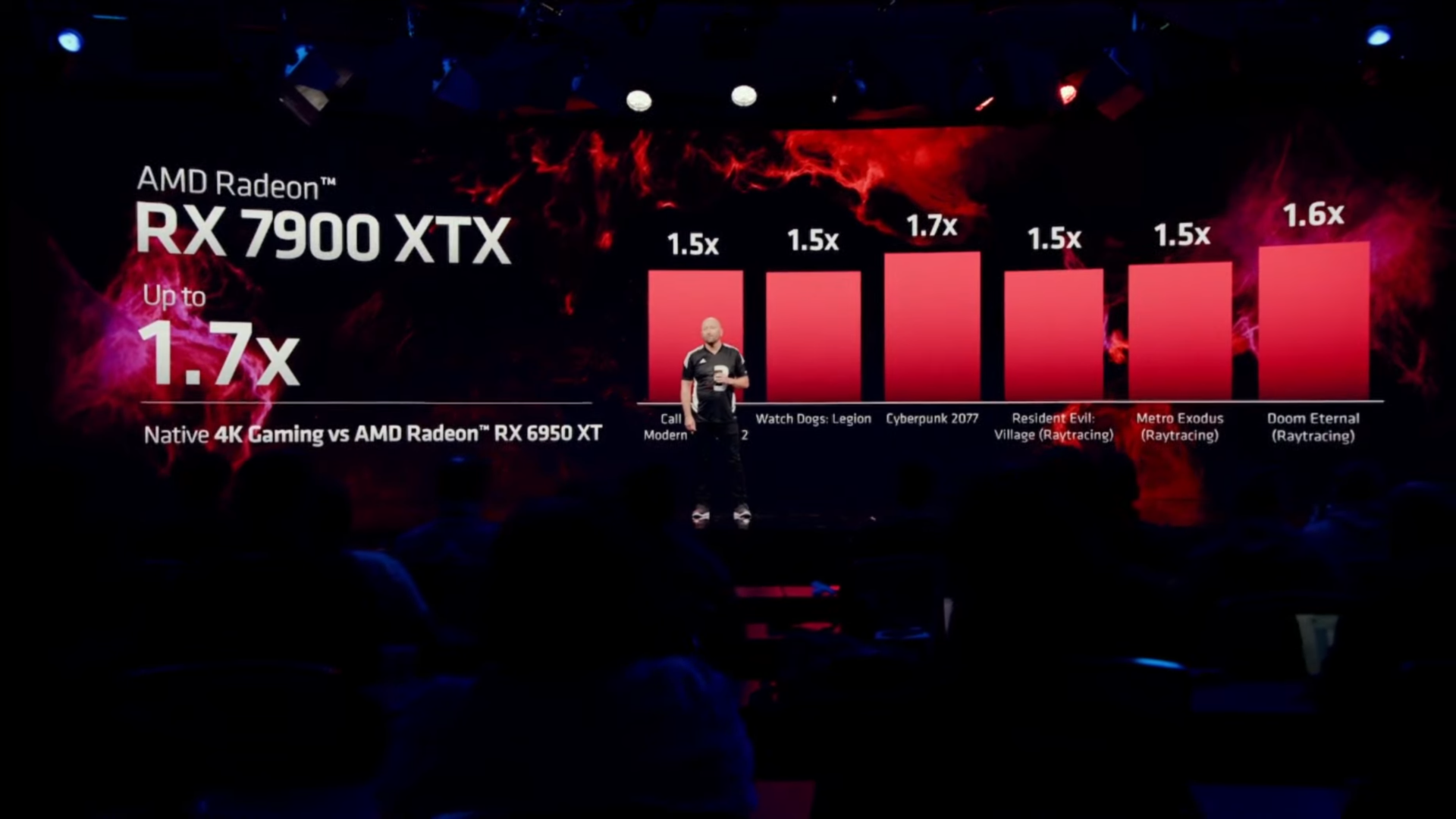 من خلال مؤتمرها أمس أزاحت شركة AMD النقاب أخيرًا عن بطاقاتها الرسومية الجديدة بمعمارية RDNA3، وكشفت الشركة عن بطاقات الفئة العليا Radeon RX 7900 XTX التي ستأتي مزودة مع 24GB من ذاكرة الفيديو، و Radeon RX 7900 XT التي ستأتي مع 20GB من ذاكرة الفيديو. الجيل الجديد من البطاقات يقدم نقلة أداء تصل إلى 54% لكل واط مقارنة مع الجيل الماضي.